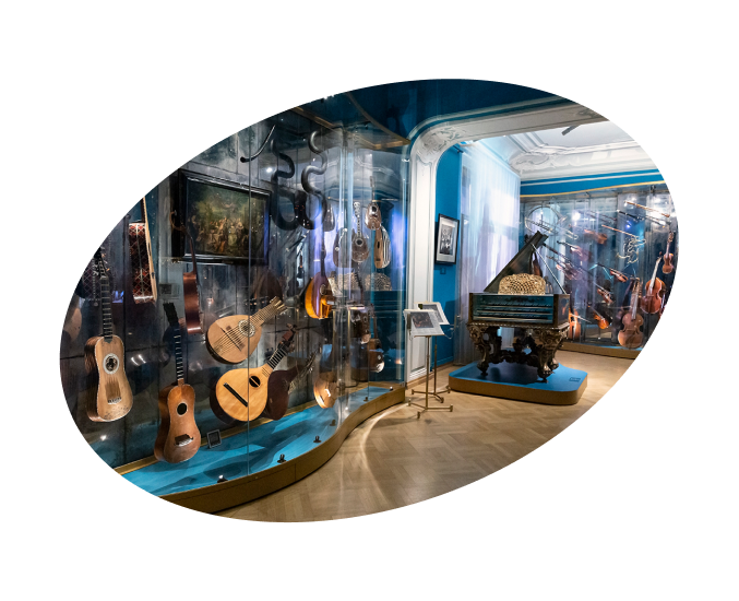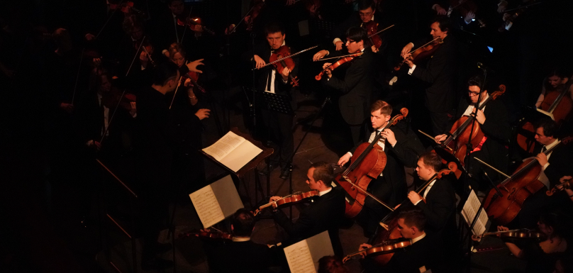 натуральные трубы и валторны, теорбы, а струнники используют барочные или классицистские смычки, конструкция которых существенно отличается от современной. Музыканты играют на жильных струнах, дающих более мягкий тембр и большее количество обертонов.